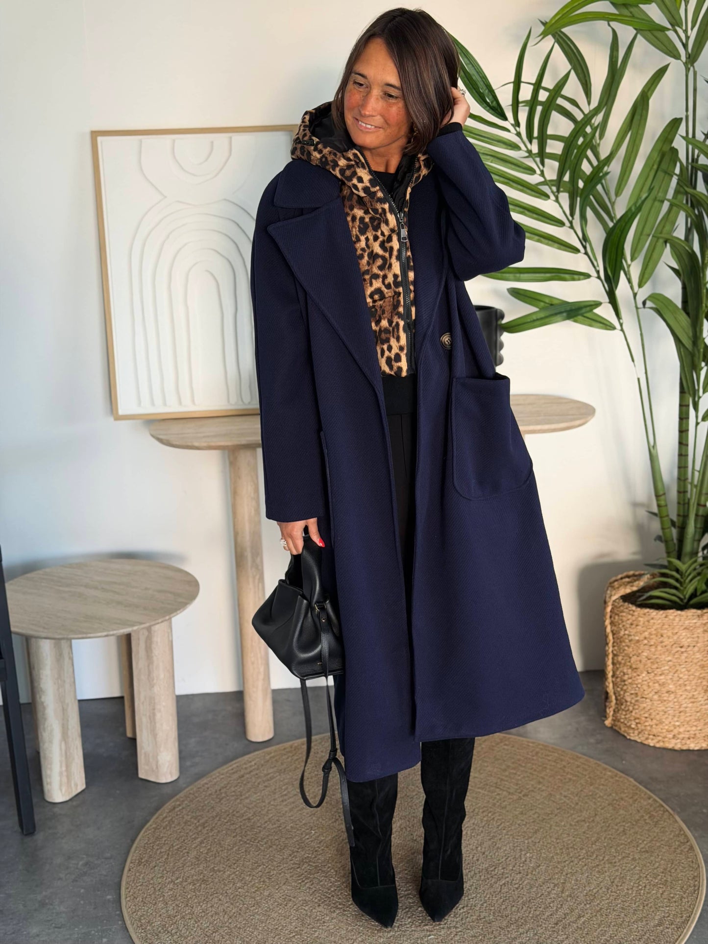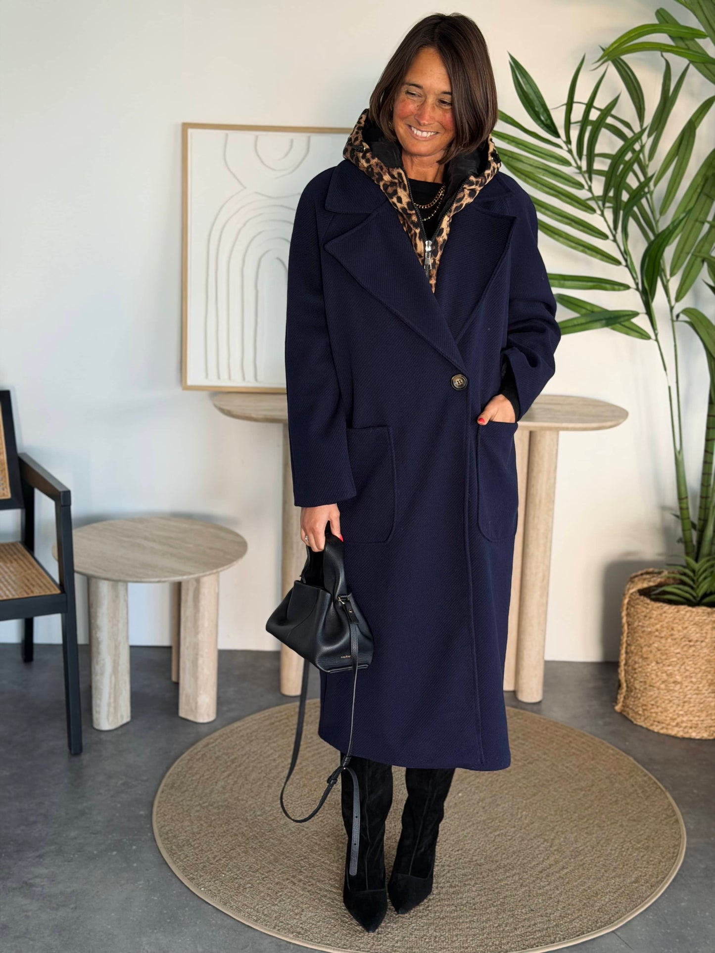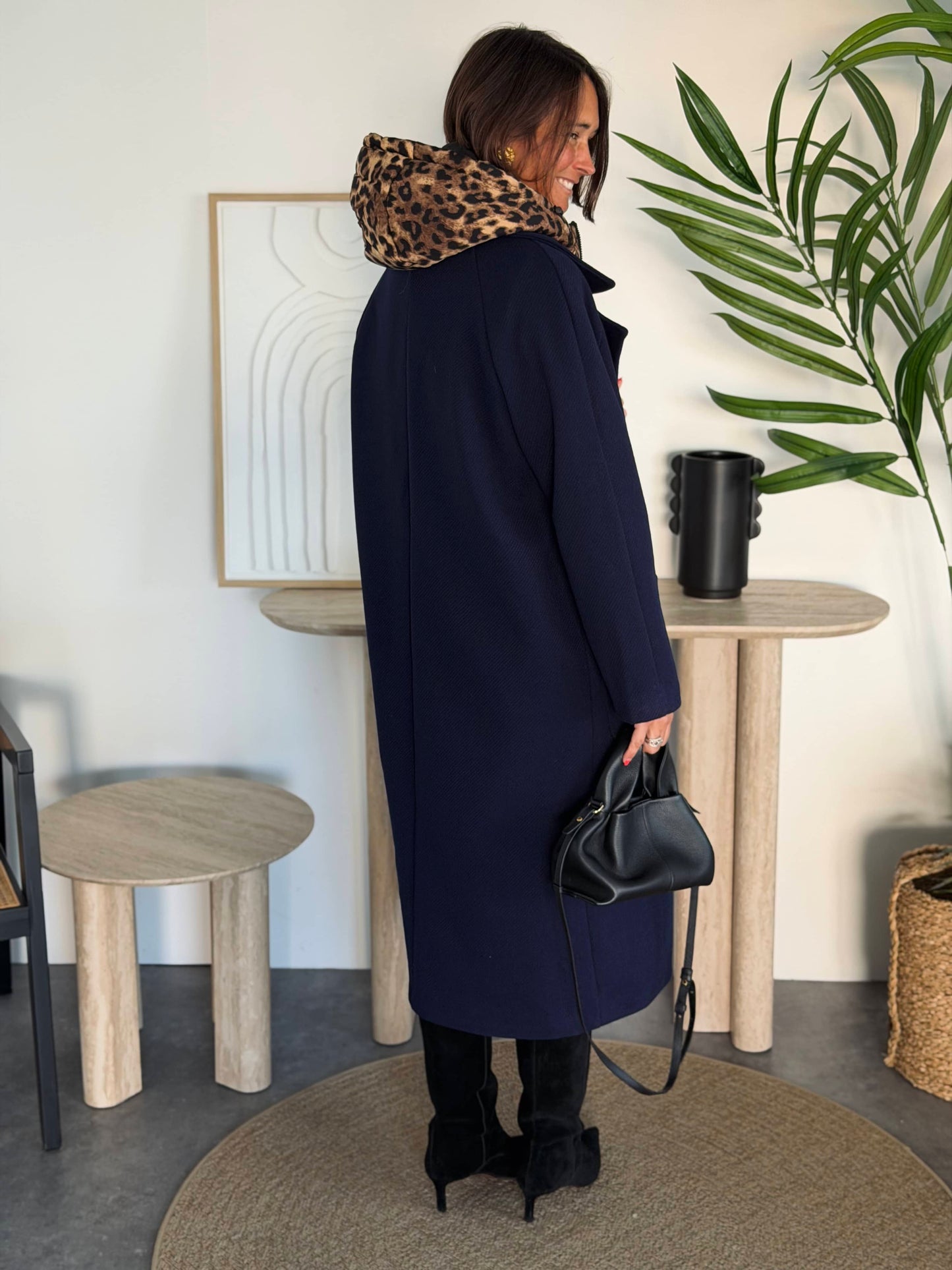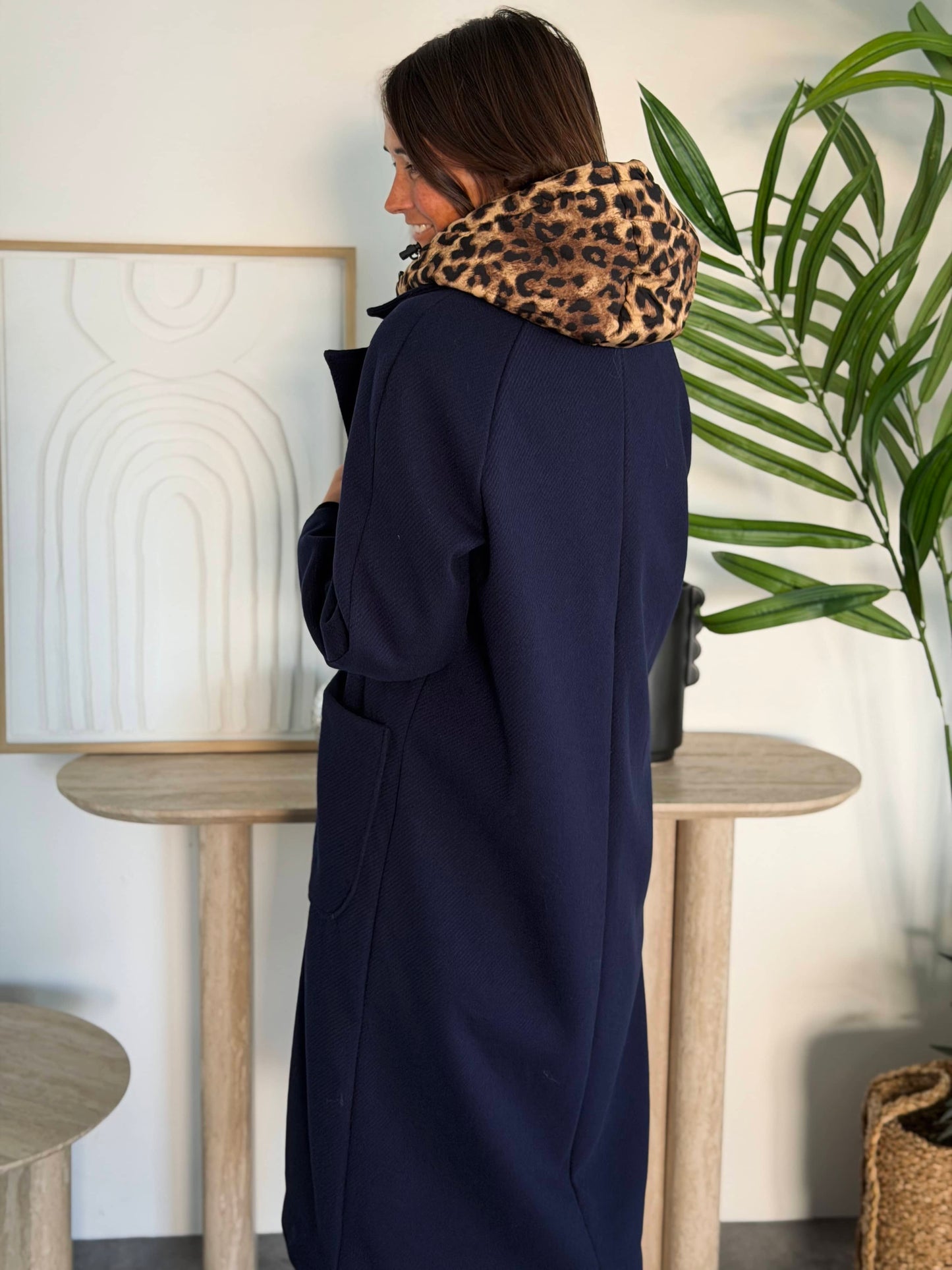 Capuche léopard amovible.