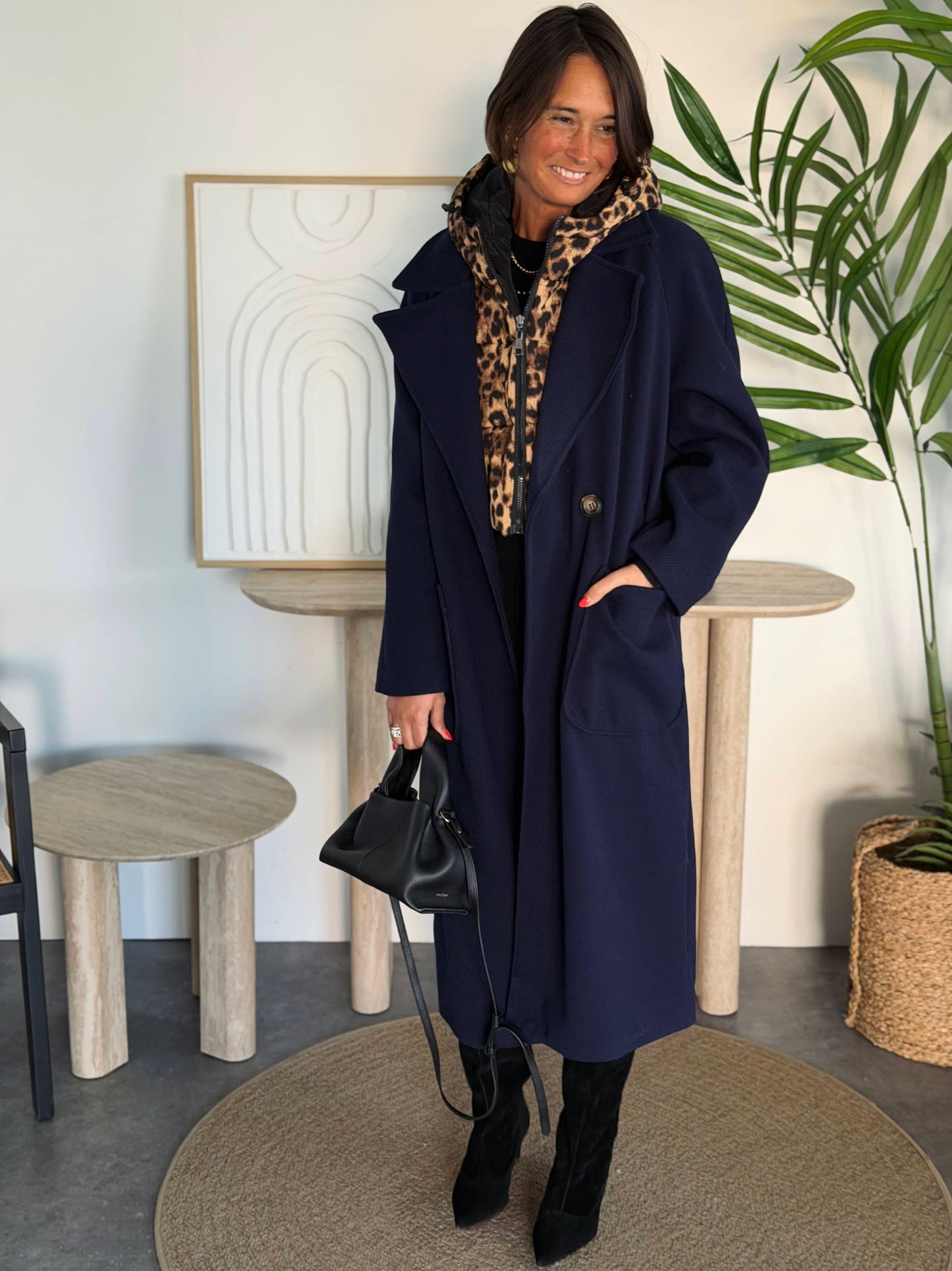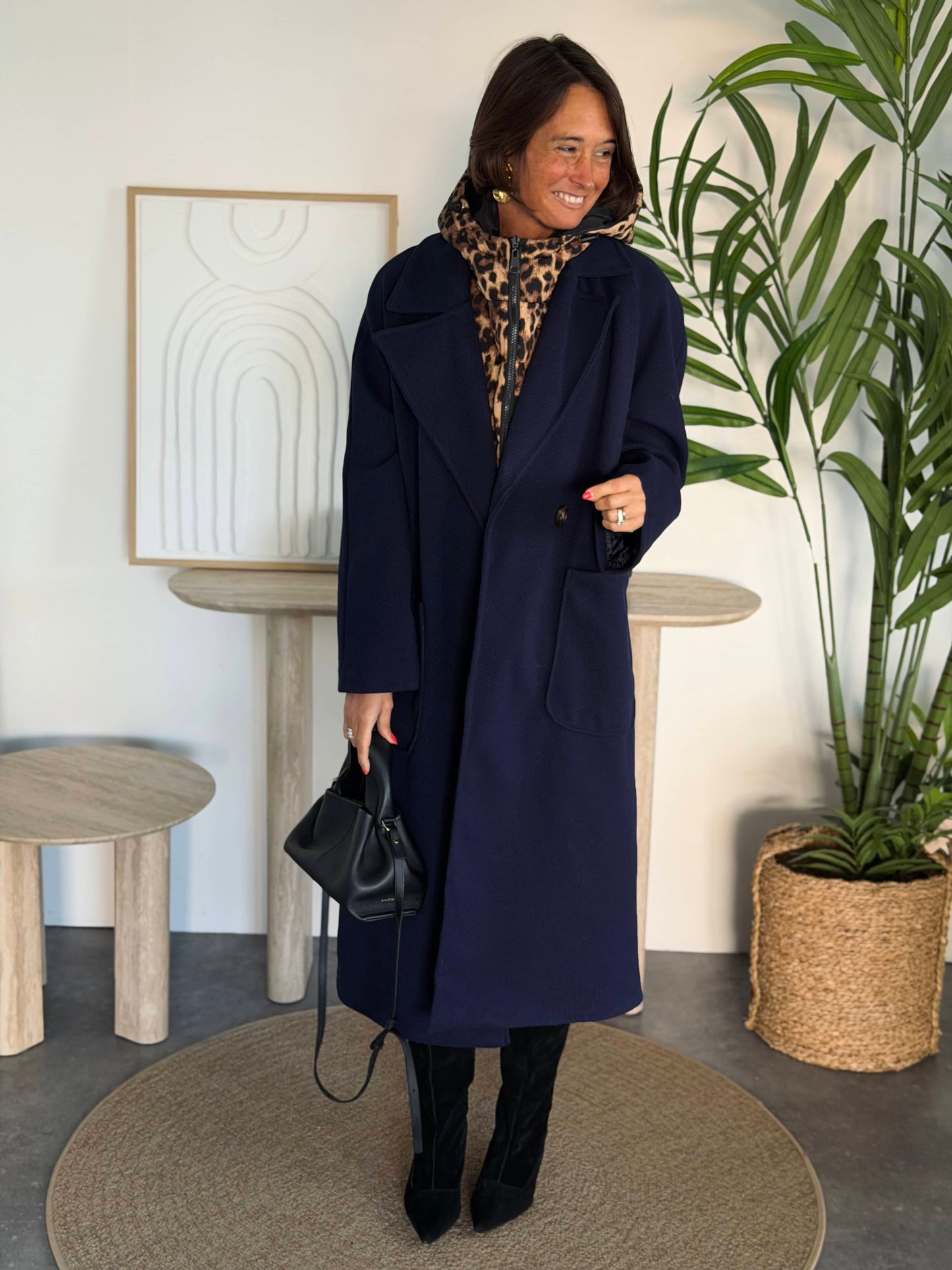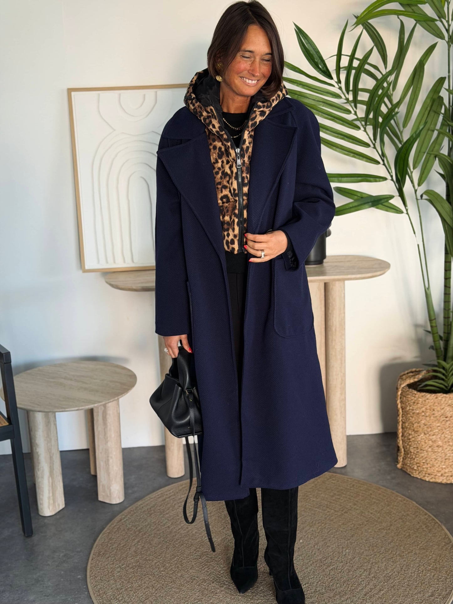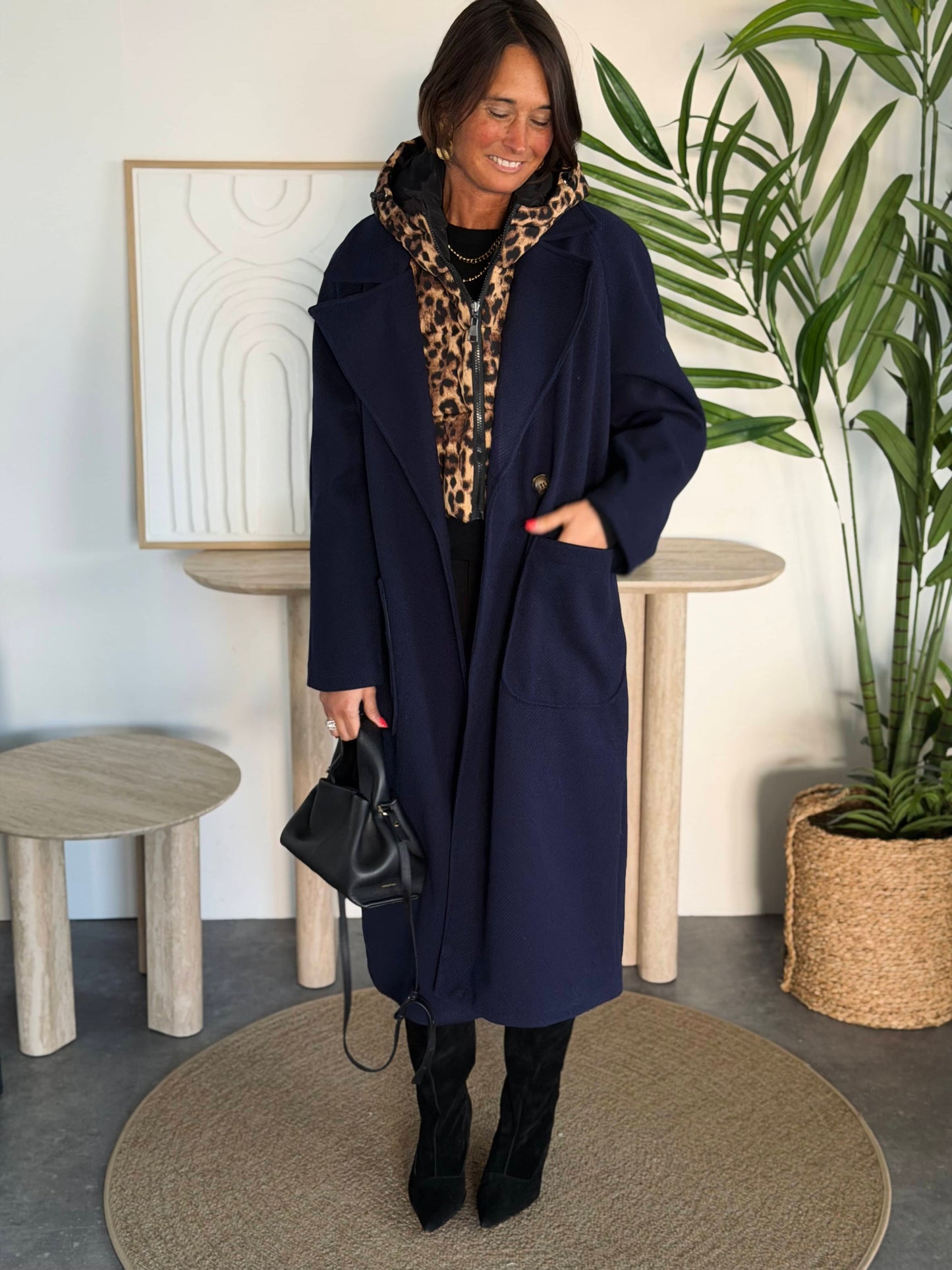 Capuche léopard amovible.